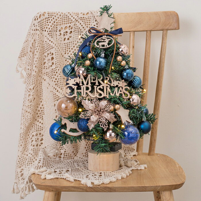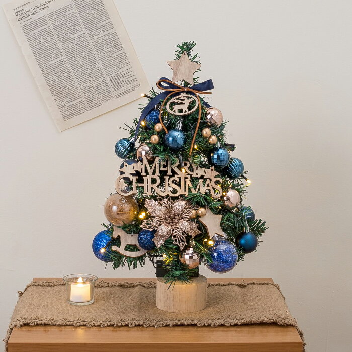 クリスマスツリー 45cm ミニツリー 卓上 LEDイルミネーション LEDライト付き キラキラ diy 雰囲気満々 クリスマスオーナメント 松ぼっくり クリスマス インテリア 電池式 パーティー 飾り 部屋 商店 プレゼント おしゃれ ブルー クリスマスツリー Christmas tree 送料無料