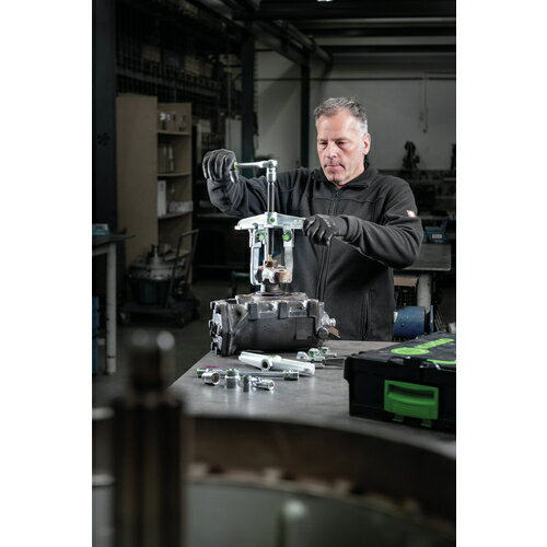 特長 ●固定ノブでアームを素早く固定して安定したセッティングが可能です。 ●アームの取付方向を変える事で外掛け・内掛けの両方で使用できます。 ●スピンドル先端部はリバーシブル構造でニードル形状とボール形状を場面に応じて使い分けられます。 ●オプションの延長アームを接続してアームを延長できます。 ●平行移動するアームにより素早くセッティング出来ます。 ●偏芯部品にも使用可能です。 ●固定ノブは油や水に濡れた手でも滑りにくいです。 用途 ●ギア、ベアリング、プーリー、ディスク等の引き抜きに。 仕様 ●適合プーリ(mm):0〜160 ●爪の届く長さ(mm):150 ●破断荷重(kN):90 ●アーム本数:3 ●保証荷重(t):9 ●爪先端厚さ(mm):5 ●作業範囲(mm):0〜160 ●全幅(mm):216 ●全高(mm):254 ●最大トルク(Nm):150 ●内掛け時作業範囲(mm):100〜220 ●固定ノブ付き 材質 ●工具鋼 質量・質量単位 ●4.1kg 【メーカー名】Kleinbongartz&Kaiser 【メーカー品番】30-2X