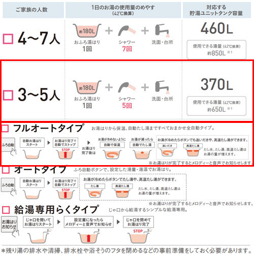 ※こちらの機種はウルトラファインバブル対応機種となりますが、この機能に必須の専用循環アダプターが メーカーにて一時出荷見合わせ中となっております。タイミングによってはかなり納期が掛かる場合や品番変更になる場合がございます。 予めご了承ください。 【セット内容】 (1)EQA37ZFVE ・貯湯ユニット TUA37ZFVE ・ヒートポンプユニット RQW45ZVE (2)KYP060A4 ・貯湯ユニット用転倒防止金具 ※貯湯タンクの転倒防止の為、基本セットに上部固定金具も含みます。 (3)BRC083H1 ・スタイリッシュリモコン(浴室/台所)※無線LAN対応 (4)KKC022E4 ・脚部カバー ※設置工事費、部材費など、別途必要となります。 ※メーカー保証は2年間です。 【規格・特徴】 ・フルオート ・370L(3〜5人用) ・パワフル高圧330kPa(減圧弁) ・Aシリーズ ・屋外設置 ・一般地 ・耐塩害仕様 【サイズ】 貯湯ユニット ・外形寸法(mm):幅630×高さ1,825×奥行730 ・質量/満水時(kg):60/430 ヒートポンプユニット ・外形寸法(mm):幅825(+74)×高さ735×奥行300 ・質量(kg):51 【別売部材】 ・サブリモコン BRC083H41 ・リモコンコード(5m) KRCW301A05 ・ウルトラファインバブルアダプター(吸気チューブ浴室内取付タイプ) KWA083A41※1※2 ・ウルトラファインバブルアダプター(吸気チューブ浴室外取付タイプ) KWA083A42※1※2 ・風呂接続アダプター(L字) KWA948D41※1 ・風呂接続アダプター(ストレート) KWA948D42※1 ・漏れ検査治具 KWA947A4G ※1 こちらを据付けるときは、必ず漏れ検査治具(KWA947A4G)を使用し、漏れ検査を行ってください。 ※2 配管長に制約があります。配管サイズ10Aの場合、3m以下(5曲がりまで)、13Aの場合は5m以下(5曲がりまで) 【機能】 「清潔・快適・安心」 ・自動ふろ配管洗浄 ・ふろ配管洗浄 ・スマート貯湯 ・ターボ沸き上げ ・沸き増し能力アップ ・あらかじめ霜取り ・ツイン給湯 ・パワフル高圧給湯(330kPa) ・ウルトラファインバブル入浴(オプション機能)※別売の専用アダプターが必要 ・温浴タイム ・気象警報緊急沸き上げ(アプリ対応) ・チャイルドロック ・非常用水取出し ・降雪対応ファン機能 「便利」 ・昼間シフト天気予報連動(アプリ対応) ・昼間シフト機能 ・沸き上げ一時休止 ・沸き上げ休止設定 ・沸き増し ・おまかせ/たっぷり/少なめ ・じゃ口閉め忘れお知らせ ・給湯量お知らせ 「おふろ」 ・ふろ自動 ・自動保温 ・快適お湯はり ・自動たし湯 ・自動たし湯入切設定 ・追いだき ・たし湯 ・高温たし湯 ・たし水 ・エコふろ保温 「リモコン」 ・無線LAN対応 ・エコ確認 ・コミュニケーション(通話) ・設定ナビ表示 ・サービスTEL表示 ・サブリモコン対応(別売) ・試運転ナビ 「その他」 ・電力契約設定(電力プラン設定/マニュアル設定) ・電力抑制設定 ・ピークカット設定 ・ECHONETLite規格準拠 ・ECHONET LiteWeb API対応 【リモコンについて】 ※セットに含んでいますリモコンは、スタイリッシュリモコン(ホワイト)となりますが、 ブラックリモコンに変更が可能です。ご希望の場合はお知らせください。別途追加費用が発生いたします。 【商品説明】 「お風呂でOFFろう」 ダイキンエコキュートで、お風呂の気になるお悩みや、1日の疲れをオフ。 いろんな機能でお風呂の時間がもっと快適で楽しくなります。 【地下水・井戸水対応商品について】 ダイキン独自の水質判定基準を満たし、弊社が認めたものはエコキュートをご使用いただけます。 ご検討前に、まずは、水質検査でご使用可能かお確かめ下さい。 ・ダイキン独自の水質判定基準で検査 ・判定まで約1週間程度かかります。 ・水質検査の結果、適用可の場合は有償、適応不可の場合は無償となります。詳しくはお問い合わせください。 【メーカー直送便の注意事項】 下記の条件がございますので、商品によってはご準備くださいますようお願い致します。 ※別途金額が発生する場合がありますので必ずご一読ください。 ■商品お渡しについて 基本ドライバー1人で訪問の為、荷下ろしの際にお手伝いできる方が必要となります。 集合住宅の場合は1階及びエントランス、戸建住宅の場合は玄関先でのお引き渡しとなります。 ■配送車について 一般的な宅配業者でございません。メーカー指定の大型トラック(4t車)にての配送となります。 道幅6m(一般的な軽自動車がすれ違える道幅)以下の場合、配達ができません。 別途追加料金が発生いたしますが、2tトラックでの手配が可能です。 階段、狭所など困難な場合はご相談ください。 ■商品お届け日について メーカーに在庫があり、日にち指定がない場合は、翌日、または翌々日のお届けとなります。ご希望日がありましたらご注文フォームの「お届け日時」にご記入ください。(平日のみ) 納期要確認の記載のある商品や受注生産商品の場合、納期にお時間が掛かります。詳細な納期については商品により異なりますので、改めて当店よりご連絡させて頂きます。 ■お届け時間について 時間指定が出来かねます。必ず連絡が取れる電話番号と荷受人のお名前を記載ください