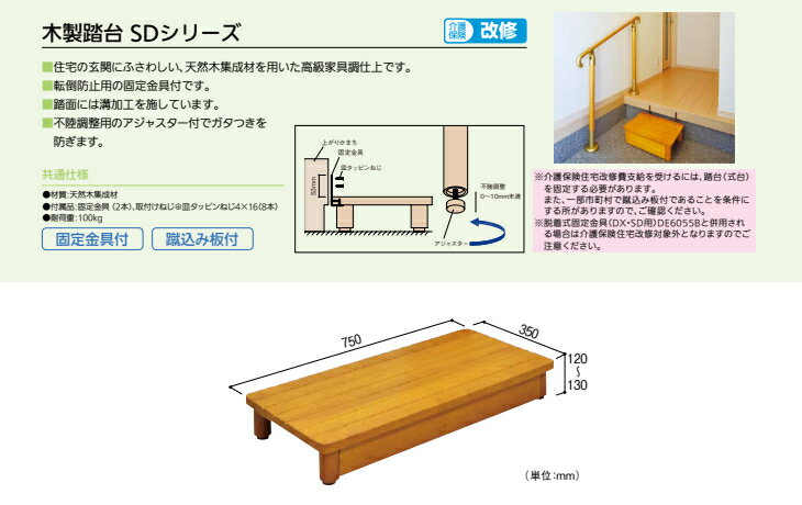 ●メーカー取り寄せ商品● メーカー在庫なしの場合、お日にちがかかる場合がございます。 ============================= ●転倒防止用の固定金具付きです。 ●踏面にはすべり止め塗装(ポリウレタン)と、溝加工を施しています。 ●不陸調整用のアジャスター付きでガタつきを防ぎます。 【色】 ミディアムオーク 【サイズ】 幅600×奥行350×高さ120〜130mm 【材質】 天然木集成材 【付属品】 固定金具(2本)、取り付けねじ 4×16(8本) 【重量】 約4.6kg 【耐荷重】 100kg