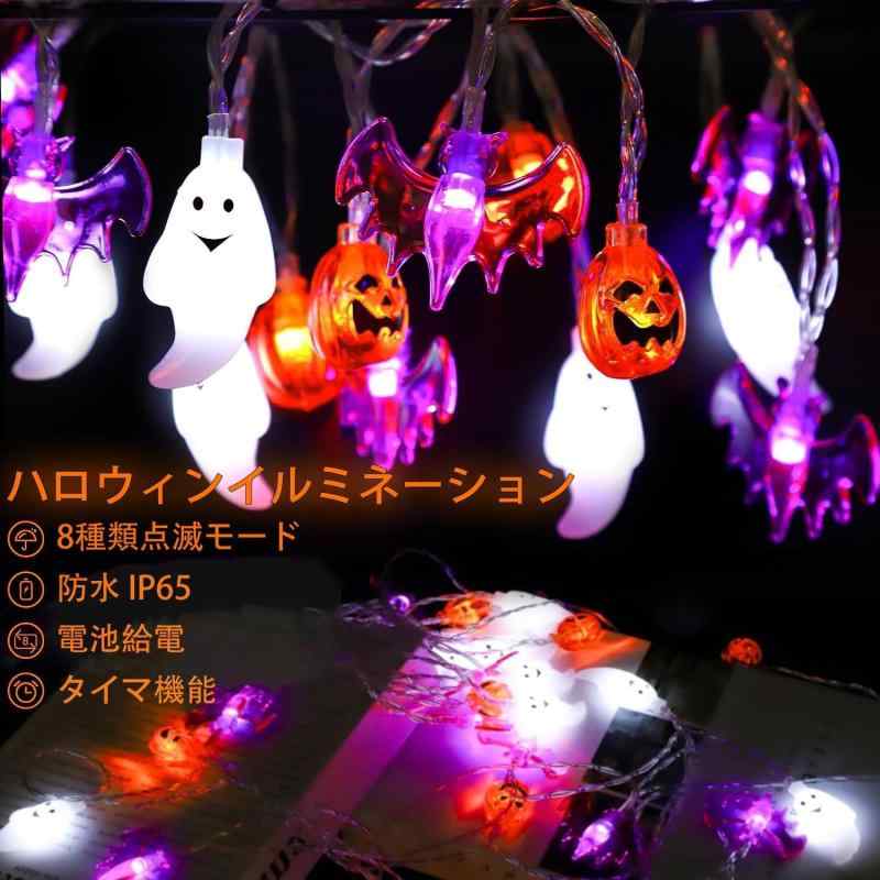 ハロウィン 飾り カボチャ ライト 30球全長5M 電池式 点灯パターン8種類 ハロウィン 防水 LED かぼちゃ イルミネーション 装飾 Halloween 飾り付け パンプキン お化け コウモリ 吊り下げ スト