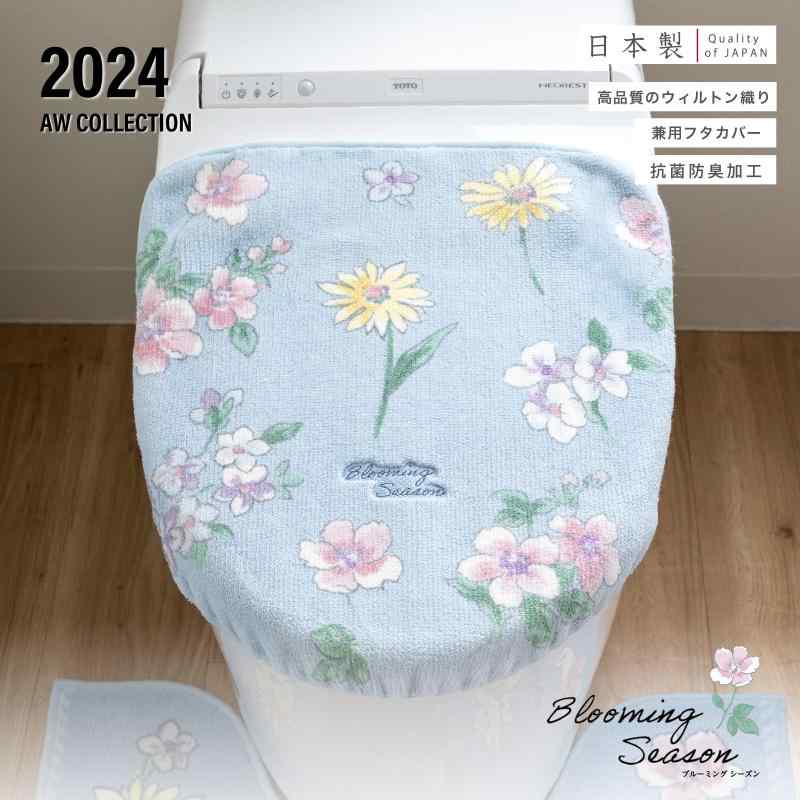 オカ(OKA) ブルーミングシーズン トイレフタカバー ドレニモタイプ(O・U・洗浄・暖房 兼用) ブルー (日本製 抗菌 防臭 洗える 吸着 貼る 花柄 ボタニカル 普通型兼用)
