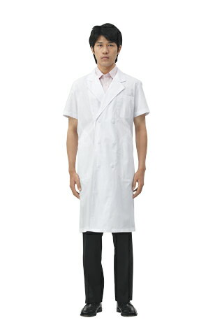 メンズ ダブル コート 半袖白衣 医療 男性白衣ドクター 診察衣白