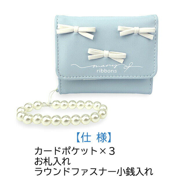 細くて小さいリボンが3つ付いた可愛い三つ折り財布。 パールビーズの飾り付き。 コンパクトなお財布なので小さいバッグでのお出かけにも最適。 カードポケットは内側に3ヶ所。 小銭入れはラウンドファスナーで大きく開いて取り出しやすい! プレゼントにもおすすめです♪ サイズ:約 縦7.5×横9.5×マチ3cm 重 量:約 93g 素 材:合皮 生産国:中国 アイテム:さいふ 財布 三つ折り財布 折り財布 コンパクト財布 関 連: 女子 女の子 ガールズ ジュニア キッズ こども/小学生 中学生 小学校 低学年 高学年/ 通学 部活 クラブ 習い事 お稽古 通塾 旅行 修学旅行 合宿 宿泊学習/レジャー イベント 散歩 街歩き お出かけ ショッピング/ プレゼント ギフト 誕生日 バースデー クリスマス Xmas ホワイトデー 母の日 こどもの日 お祝い 入学 進学 七五三/ おしゃれ かわいい 大人かわいい キュート カジュアル 小さめ コンパクト 使いやすい 便利 人気 売れ筋 おすすめ ご注意 ※商品写真はできる限り実物の色に近づけるよう徹底しておりますが、 お使いのモニター設定、お部屋の照明等により実際の商品と色味が異なる場合がございます。ご了承ください。 ※記載しておりますサイズ・重量は測定方法により若干異なる場合があります。 ※出来る限り新しく入荷した商品の画像を掲載しておりますが、製造時期により予告なく仕様変更される場合がございます。 ※在庫数の管理につきましては本商品は複数サイトで販売をしております関係上、アクセスが集中して場合には、ご注文完了後でもわずかな入力の時間差で在庫切れとなる場合がございます。その際はお客様にはご迷惑をおかけする場合がございますが、ご了承くださいませ。 「世界の子どもたちにワクチンを」 詳しくはこちら→「カバンイズム」では商品をご購入頂くと、売上の一部を「世界の子どもにワクチンを 日本委員会(JCV)」へ寄付する活動を行っております。■ご注意 ※商品写真はできる限り実物の色に近づけるよう徹底しておりますが、 お使いのモニター設定、お部屋の照明等により実際の商品と色味が異なる場合がございます。ご了承ください。 ※記載しておりますサイズ・重量は測定方法により若干異なる場合があります。 ※出来る限り新しく入荷した商品の画像を掲載しておりますが、製造時期により予告なく仕様変更される場合がございます。 ※在庫数の管理につきましては本商品は複数サイトで販売をしております関係上、アクセスが集中して場合には、ご注文完了後でもわずかな入力の時間差で在庫切れとなる場合がございます。その際はお客様にはご迷惑をおかけする場合がございますが、ご了承くださいませ。