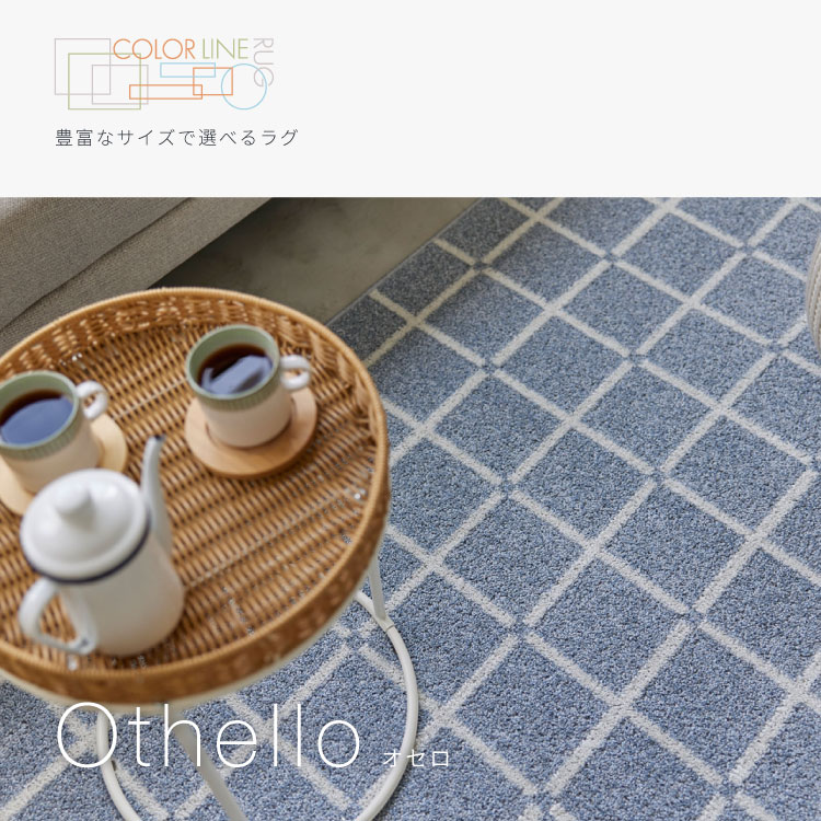 スミノエ ラグマット オセロ L 185×240cm 約 3畳 ブルー オレンジ ホワイト 格子柄 ファミリー リビング こたつの下に コンパクト 国産 ラグ