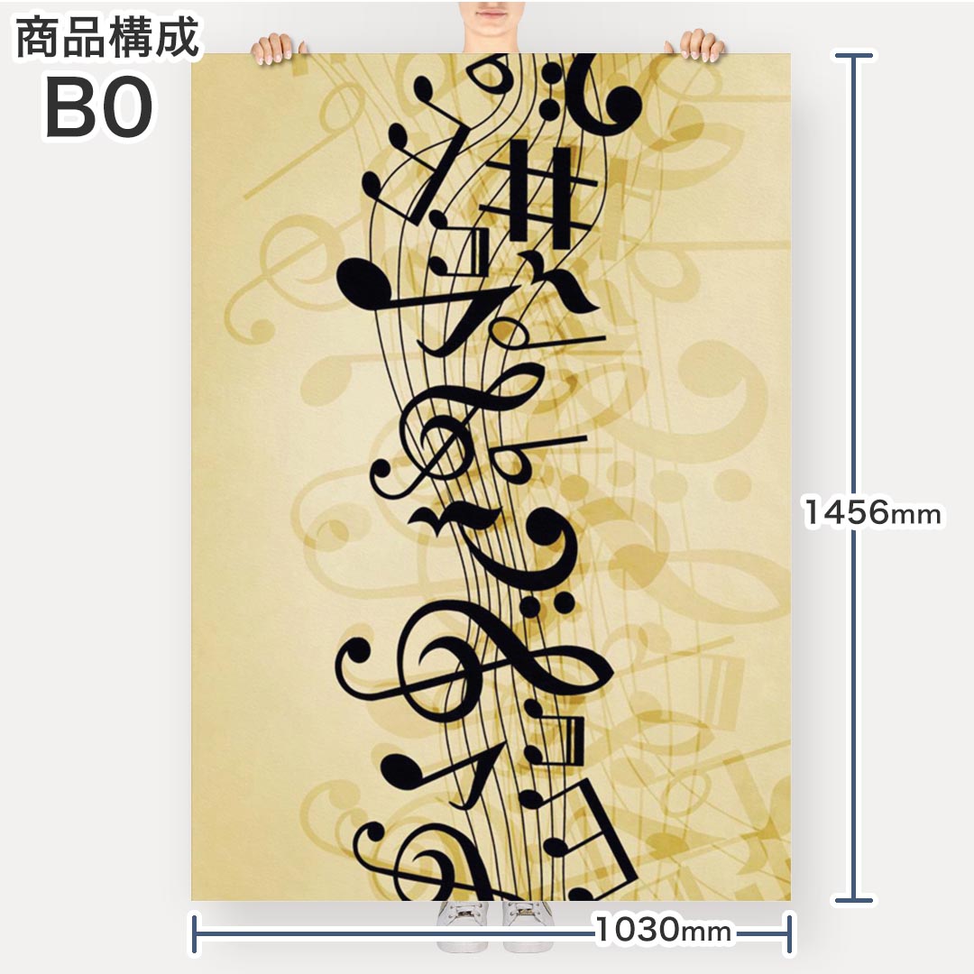 ポステッカー ポスター ウォールステッカー シール式ステッカー 飾り 1030mm×1456mm B0 写真 フォト 壁 インテリア おしゃれ 剥がせる wall sticker poster 008034 音符 楽譜 レトロ