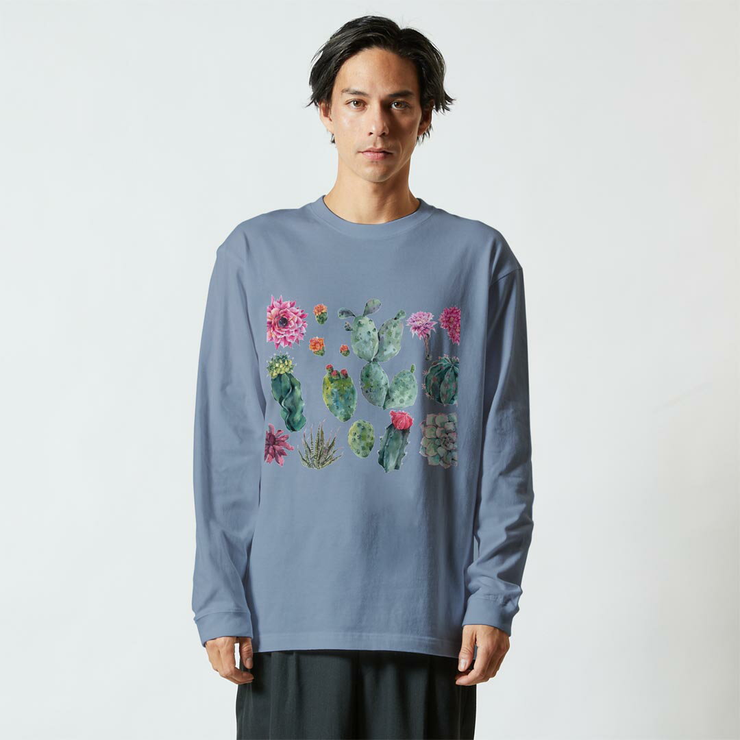 選べる14カラー 長袖リブ付きTシャツ メンズ レディース ユニセックス unisex 長袖 デザイン XS S M L XL 2XL Tシャツ ロング ティーシャツ T shirt 014334 花 サボテン