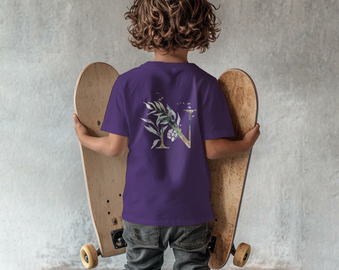 選べる18カラー Tシャツ キッズ 半袖 ホワイト グレー デザイン 90 100 110 120 130 140 150 160 Tシャツ ティーシャツ T shirt 019131 文字 n アルファベット