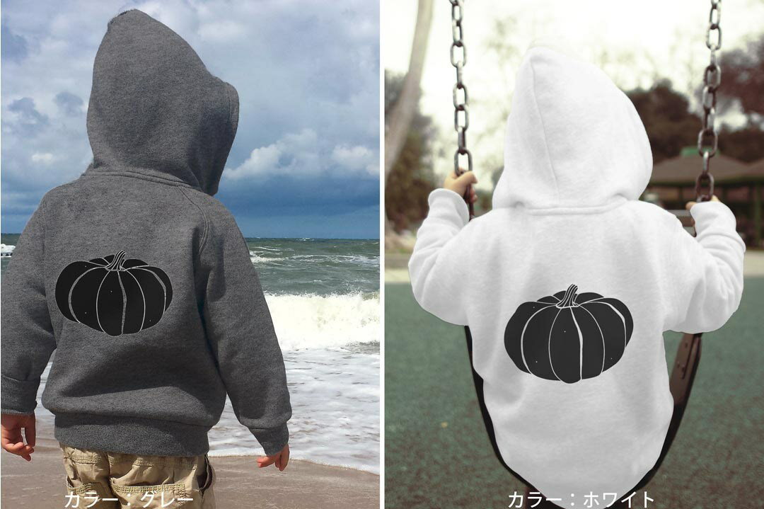 選べる3カラー パーカー スウェット バックプリントキッズ 男女兼用 男の子 女の子 ユニセックス unisex 長袖 デザイン リブ 110 130 150 parker sweat 015741 かぼちゃ 食べ物 野菜 モノクロ