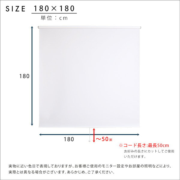 【素材】 ポリエステル100% 【商品サイズ】 180×180cm 【商品重量】 3.0kg 【梱包サイズ】 W8×D6×H200cm 【梱包重量】 3.2kg 【生産国】 中国 【カラー】 ホワイト、ベージュ、ブラウン、グリーン、イエロー 【その他】 取付可能幅:30-180cm関連商品壁空け不要!つっぱりロールスクリーン 幅60cm(採光タイプ)壁空け不要!つっぱりロールスクリーン 幅90cm(採光タイプ)壁空け不要!つっぱりロールスクリーン 幅180cm(採光タイプ)壁空け不要!つっぱりロールスクリーン 幅60cm(遮光タイプ)壁空け不要!つっぱりロールスクリーン 幅90cm(遮光タイプ)壁空け不要!つっぱりロールスクリーン 幅180cm(遮光タイプ)壁空け不要!つっぱりロールスクリーン 幅180cm(遮光タイプ)【注意事項】メーカー直送の商品となりますので、「代金引換」払いは不可となります。ご了承ください。お届け先が、北海道、沖縄、離島になる場合、別途送料が必要になる場合がございます。