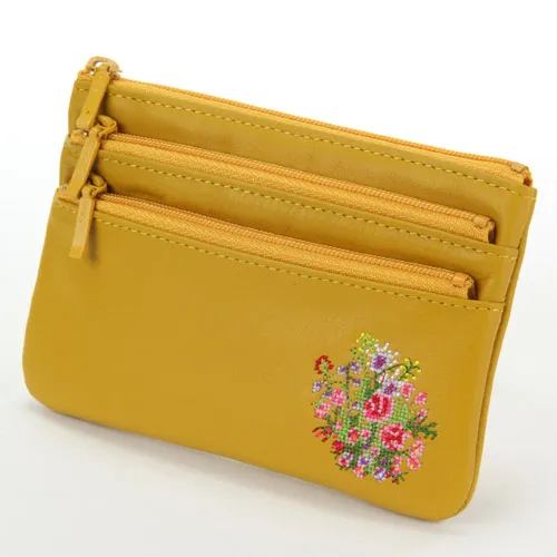 サイズ 約9.5×13.5×1cm 重量42g 素材・原材料名・成分 牛革 原産国 日本 コメント 3段ファスナーなので、小銭や薬、細々した小物などを分けて収納できます。 使い方の幅が広がるポーチです。 『夢詩集』は、「快適な毎日を過ごすためにエレガントで使いやすく」をテーマに、美しく繊細な刺繍を施したバッグと革小物シリーズ。 傷つきやすい革を薄く均一になめし、直接刺繍する繊細な作業と高度な技術で色とりどりの野の花を多色刺繍で表現しました。 素材は使えば使うほどに手になじむソフトな牛革を使用しているので、次第に艶も加わって、手放せない愛着の1点となります。 仕様詳細 ファスナーポケット×3