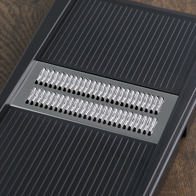 材質 材質:本体・安全ガード/ABS樹脂(耐熱温度80度)、刃部/18-8ステンレススチール、すべり止め/エラストマー樹脂(耐熱温度120度) サイズ詳細 本体サイズ:長さ370×幅140×高さ55mm重量:250g 生産国 日本 ※一度に複数の商品をご購入の場合、一部商品が欠品していると出荷が遅れる可能性がございます。切れ味良く、押し引き両方スピーディーに千切りが出来る特殊クランク刃を採用した千切り器。先を直置きして調理する時に滑りにくいように滑り止め付。ボールに上で調理する時に安定する切り欠き付。調理時と収納時に安全なガード付。千切り幅:約1mm幅 注目のアイテム1,880円(税込)3,980円(税込)2,280円(税込)1,430円(税込)3,980円(税込)7,500円(税込)一緒に購入されている商品貝印 関孫六 コンパクトスライサー 関孫六スラ1,089円関孫六 可変式Vスライサー レギュラー DH32,178円貝印 関孫六 ワイドスピード千切り器 細 黒 1,980円関連商品はこちら関孫六 ワイドスピード千切り器 極細 DH332,200円関孫六 ワイドスピード千切り器 太 DH3301,980円関孫六 ワイドスピード千切り器 太 DH3302,200円