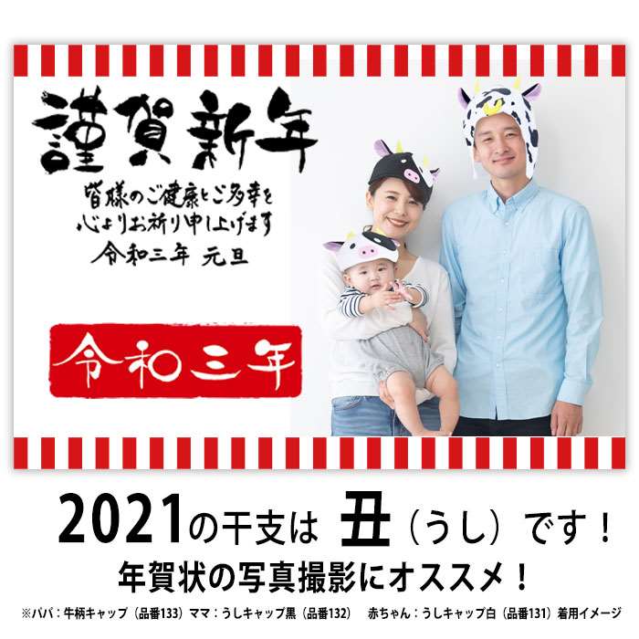 SEARCH WORD:丑年 干支グッズ 年賀状の写真撮影に ご家族で使える 干支 2021年 2021 令和三年 令和3年 丑年 うし年 ウシ年 牛年 牛 丑 うし ウシ 年 年賀状 年賀はがき 年賀 グリーティングカード 家族写真 写真 画像 動画 年賀写真 手作り年賀状 手作りはがき NEW YEAR ニューイヤー NEWYEAR あけおめ 新年 新春 挨拶状 カード SNS 記念 思い出 撮影 ご挨拶 新年会 忘年会 動画配信 キャップ CAP 帽子 ぼうし かぶりもの かぶり 商品概要:うしキャップ。大人から子供までしっかり頭にフィットします。年賀状の写真撮影や年越しのお祝い、動画や写真撮影などにもおすすめです。商品仕様:■メーカー:ルカン■JANコード:4573484831324■商品名:うしキャップ 黒 帽子 キャップ 干支 年賀状撮影 丑年 うし 牛 2021年干支 令和3年 お正月 仮装 変装 コスプレ 雑貨 小道具■型番:132■内容:うしキャップ黒x1点■素材:ポリエステル100%■パッケージサイズ:W250 H245 D30■サイズ:フリーサイズ■原産国:中国■パッケージ仕様:裸 ヘッダーガン打ち■その他:画像はイメージです。※パッケージの写真・イラストと商品は若干異なる場合がございますので、ご了承下さい。パッケージ、商品仕様等は予告なく変更となる場合がございます。色味は実物と異なる場合がございます。※商品概要、仕様、サービス内容及び企業情報などは商品発表時点のものです。※最新の情報に関しましては、メーカーサイトをご覧ください。※発売前予約商品についてはメーカーの商品製造数により納期が遅れる場合やご注文キャンセルをお願いする場合がございます。