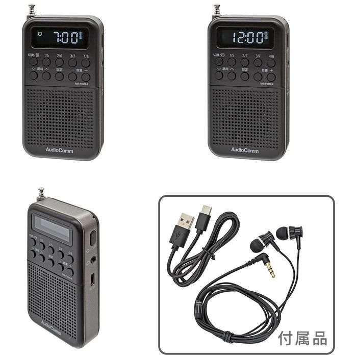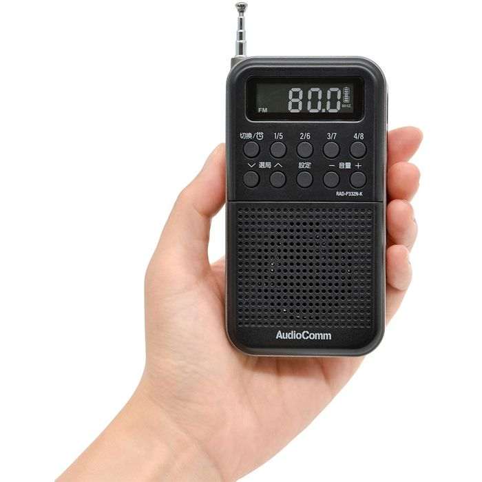 SEARCH WORD:ポケットラジオ 充電式 AM FM 音楽 動画 アウトドア 屋外 災害 防災 緊急時 非常時 液晶 デジタル 備蓄用品 お出かけ 散歩 農作業商品概要:●デジタル表示で選局しやすい、ポケットサイズのコンパクトラジオ。 ●よく聴くラジオ局を登録しておけば、ダイレクトボタンでかんたん選局。 ●乾電池が要らない充電式(専用USB-Cコード付属)。 ●デジタル高感度受信(PLLデジタル)。 ●口径40mmスピーカー搭載。 ●時計、アラーム機能も搭載。 ●最大AM20局/FM50局をプリセット登録。 ●ワイドFM(FM補完放送)対応。 ●連続使用15時間(イヤホン時)。 ●FMステレオ受信(イヤホン時)。 ●ステレオイヤホン付属。 ●本体カラーはブラック商品仕様:■メーカー:OHM■JANコード:4971275370524■商品名:充電式ポケットラジオ(ワイドFM/連続使用15時間 イヤホン時/ブラック)■型番: RAD-P332N-K■電源:DC5V 1A(USB-C給電)■内蔵バッテリー:充電式リチウムイオン電池(DC3.7V 800mAh)■最大出力:650mW■受信周波数:AM…522~1710kHz、FM…76~108MHz■スピーカー:口径40mm×1(8Ω)■充電時間:約2.5時間(残量ゼロからフル充電まで)■連続使用可能時間:・スピーカー時…AM受信/約11時間、FM受信/約12時間 ・イヤホン時…AM受信/約15時間、FM受信/約15時間■連続待機時間:約300日(電源オフ・時計表示のみの場合)■アンテナ:AM…フェライトバーアンテナ(内蔵)、FM…ロッドアンテナ■接続端子:電源…USB-C端子、イヤホン…φ3.5mmステレオミニジャック■時計精度:月差約30秒■外形寸法:幅58×高さ108×奥行21.8mm(突起物含まず)■質量:約98g■付属品:専用充電コード、ステレオイヤホン、保証書、取扱説明書■ご注意事項:※ 掲載写真は表記サイズと異なる場合がございます。※ 画面上のカラーはご使用ブラウザやモニターの設定により、実物とは若干異なる場合がございます。あらかじめご了承の上、ご注文をお願いいたします。※商品概要、仕様、サービス内容及び企業情報などは商品発表時点のものです。※最新の情報に関しましては、メーカーサイトをご覧ください。※発売前予約商品についてはメーカーの商品製造数により納期が遅れる場合やご注文キャンセルをお願いする場合がございます。