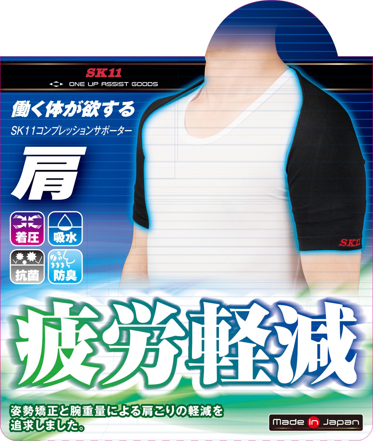 納期について:メーカー直送品(代引き不可)【DIY 工具 ツール SK11 コンプレッションサポーター KS-KATA-M-BK ワークサポート サポート用品 サポータープロテクター 4977292392600】【 特長 】・適度なコンプレッション(着圧)とテーピング効果により各部位をサポートし、作業者の疲労を軽減します。・汗のべとつきなどを防ぐ吸水速乾素材を採用し快適な作業を継続できます。・消臭抗菌効果もあり、汗のにおいも気にせずに作業が継続できます。・姿勢の矯正と腕の重量軽減により肩こりを和らげます。・薄手タイプでフィット感が良く、動きやすいです。・肩関節を後ろに引き寄せることにより胸を張る姿勢が自然ととれる肩関節サポートと、腕をサポートし僧帽筋への負担を軽減する筋肉サポート付きです。【 用途 】・肩の負担軽減。 仕様品名 SK11 コンプレッションサポーター KS-KATA-M-BKサイズ M(上腕最大囲25〜29cm)。色 黒。着圧。吸水。抗菌。防臭。原産国 日本国単品サイズ(幅x高さx奥行き) 130x230x10mm【 材質/仕上 】ナイロン。/ポリウレタン。質量 70gJANコード 4977292392600【 注意 】●使用中・使用後にからだに異常を感じた場合は直ちに使用を中止してください。●指定の部位以外には使用しないでください。●サイズの合わないものは使用しないでください。●就寝中には使用しないでください。●部分的に強い力が加わると破れ等の恐れがありますのでご注意ください。