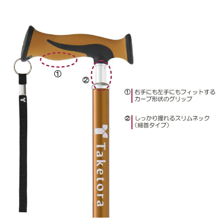 製品仕様 商品名 バンブーステッキ 素材・材質 [本体]アルミ [握り手]TPR,PP [ストラップ]ポリエステル [杖先ゴム]TPR サイズ φ16/19×H680~960mm(25mmきざみ・12段階) 重量 310g 商品説明 握りやすさとフィット感にこだわりぬいた杖 ●右手にも左手にもフィットするカーブ形状のグリップ ●しっかり握れるスリムネック(細首タイプ) ●安定感のある直径約5cmの杖先ゴム ・杖から手をはなしても安心なストラップ付 ・安全性を重視したSGマーク付 >>専用の杖先替えゴムはこちら ※本商品には替えゴムは付属していません。 必要な場合は上記リンクから別途お買い求めください。 注意事項 ※画面上と実物では多少色具合が異なって見える場合もございます。ご了承ください。 ※商品はご注文後、通常1〜2営業日で発送いたします。 メーカー 竹虎