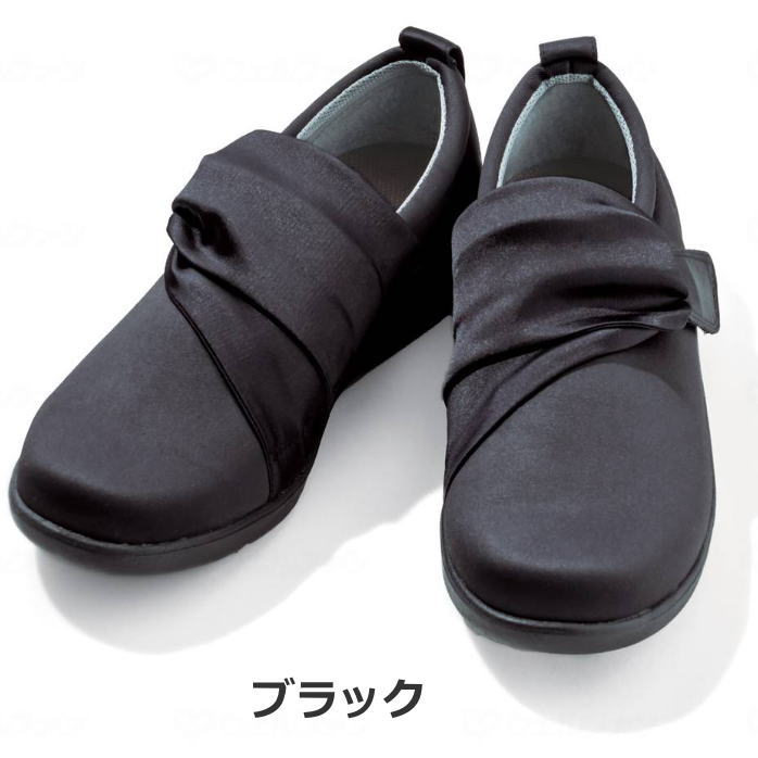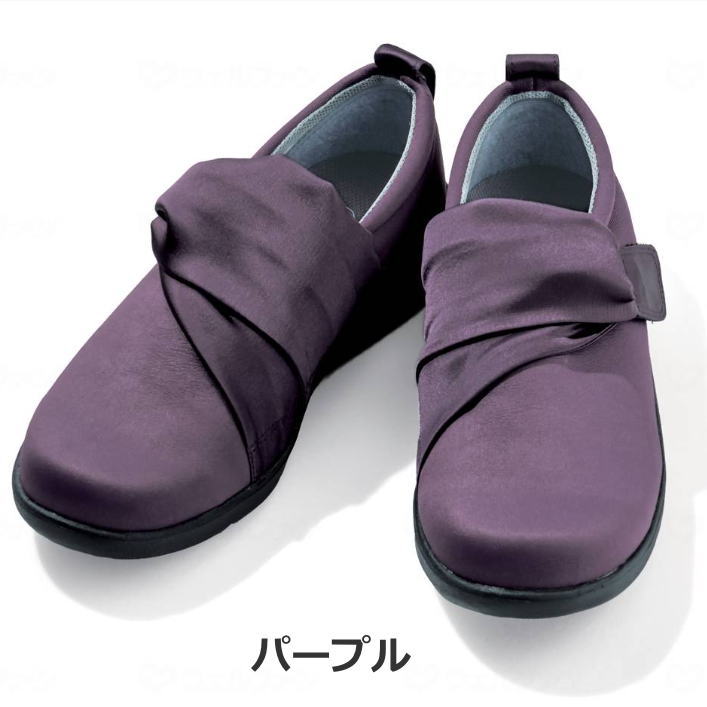 製品仕様 商品名 エレガントマジック 3E 1103 内容量 1足(両足販売) 素材・原材料 表:ポリエステル100% 内:ポリエステル100%(メッシュ) 底:合成底(EVA) サイズ S(21.0~21.5cm) M(22.0~22.5cm) L(23.0~23.5cm) LL(24.0~24.5cm) 3L(25.0~25.5cm) 重さ:約170g(片方Lサイズ) 商品説明 上品な足元でらくらく歩ける ○光によって輝きが変化する。流れるような光沢が醸しだす高級感。 ○外出時やフォーマルにも。今までになかった上品なデザインに機能性をプラス。 ○柔らかなドレープが生み出す、優美な艶感。 ○ベルトのつまみ部分も丸いフォルムで上品に。 ○つま先上向きカープで、自然な足運びをサポート。 ○適度なグリップ性で安心。施設内でもご利用いただけます。 ○ワンタッチベルトで開閉の煩わしさを軽減。 ○ベロがないため履きやすい。 ○足入れしやすい履き口のスリット。 ○太い2本溝で屈曲しやすく、デザイン性も兼ね備えた靴底。 ○耐久性があり屈曲性も高く、歩行しやすい靴底。 ○撥水加工 ○手洗い可能 注意事項 ※画面上と実物では多少色具合が異なって見える場合もございます。ご了承ください。 ※ご注文受付後、通常1〜2営業日で発送いたします。 ※複数店で在庫を共有しているため、ご注文のタイミングで在庫が確保できない場合がございます。 メーカー 徳武産業