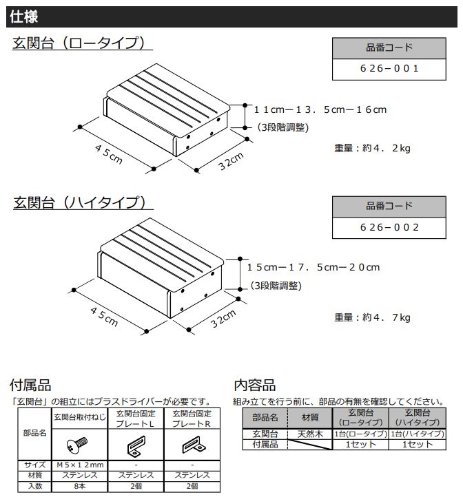 ●サイズ/幅45×奥行32×高さ15・17.5・20cm(3段階調整) ●重さ/約4.7kg メーカー:シコク 【ご注意ください】 ※本商品は送付先が「沖縄・離島の場合」は、当店ではご注文をお受けしておりません。 ご注文いただいても、お客様都合キャンセルとなります。 ※リニューアルに伴い、パッケージ・内容等予告なく変更する場合がございます。 予めご了承ください。・天板、側面に滑り止め加工を施しています。 ・玄関用ベストサポート手すりと併用していただくことで、より快適にお使いいただけます。