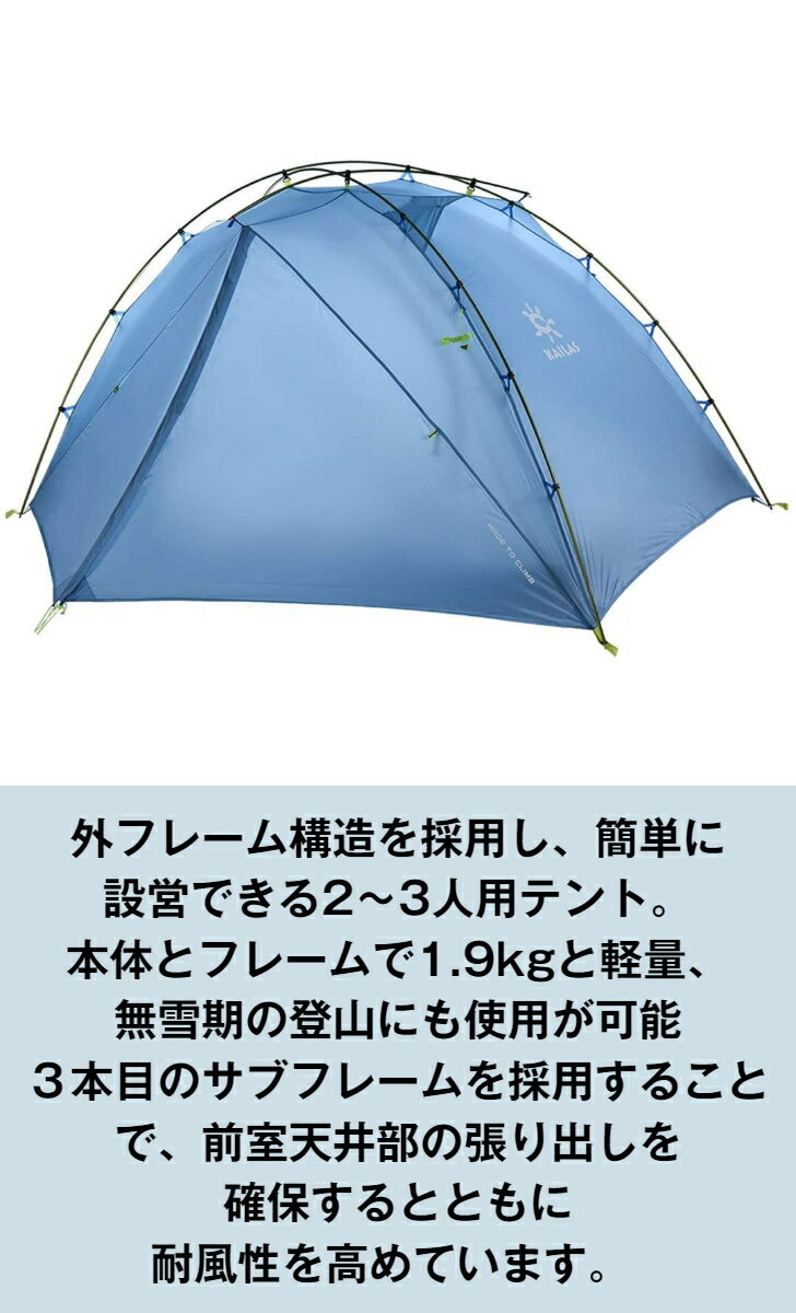 STRATUSテント 2〜3人用 キャンプ 軽量 耐久 軽い 丈夫 頑丈 コンパクト 1.9kg 強度 弾性 繊維 防水 カイラス ピンク ライトブルー 登山 アウトドア ソロキャンプ バーベキュー BBQ テント本体 フレーム