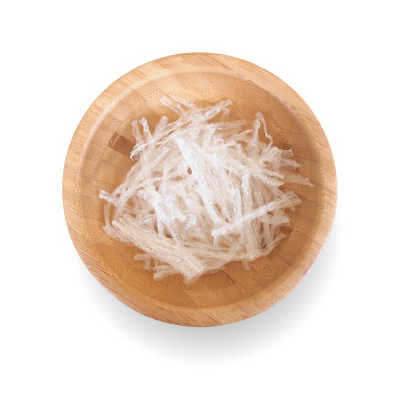 商品説明 名 称 糸寒天 原材料名 オゴノリ 内容量 500g 賞味期限 364日 保存方法 常温 原産国名 中国 加工者 うわべ食品工業株式会社 三重県伊勢市東大淀町124 栄養成分表示 100g 当たり エネルギー 159kcal たんぱく質 2.4 g 脂 質 0.2 g 炭水化物 74.1 g 食塩相当量 0.3 g 数値は日本食品標準成分表を用いて計算した推定値です。糸寒天の原料は海外のものを使用しておりますが、弊社でサンプリング、検品をおこなった商品を仕入れています。 水に戻した時の食感は、国内産棒寒天に比べると固めではございますが、特に気になる固さではございません。 煮溶かす際も稀に細い芯状のものが気になる場合があり、漉(こ)して頂く手間がかかることもございます。 漉(こ)すのがご面倒でしたら箸ですこし取り除いてください。(沸騰するまで煮込んだら無くなる場合もございます)