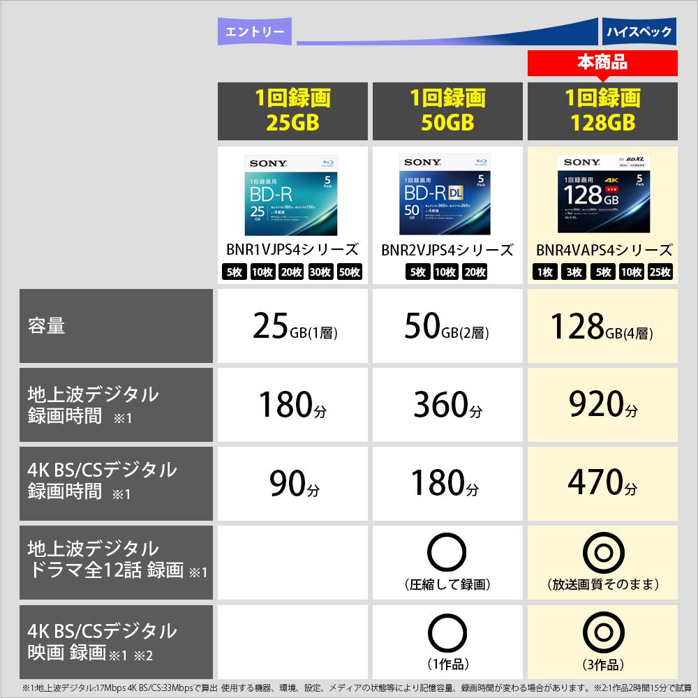 ソニー 日本製 ブルーレイディスク BD-R XL 128GB (1枚あたり地デジ約15時間) 1回録画用 25枚入り 4倍速ダビング対応 ケース無し 25BNR4VAPP4
