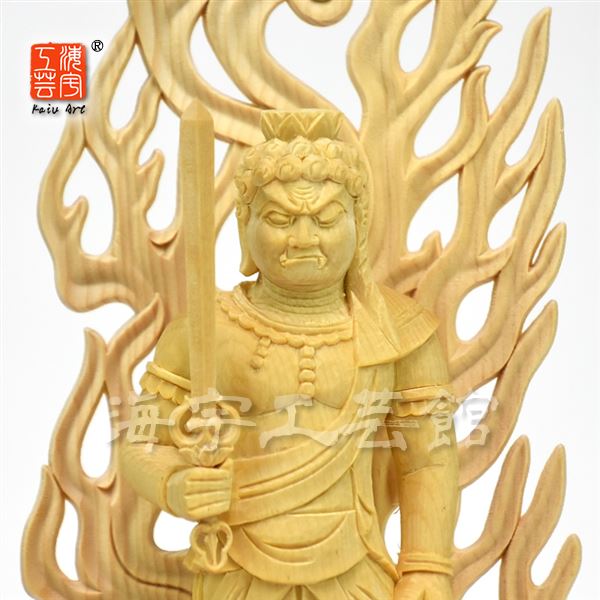 木彫り仏像 【不動明王立像】 火炎光背岩台 桧木(ひのき) 立4.0寸 干支お守り本尊 酉年 真言宗 脇仏
