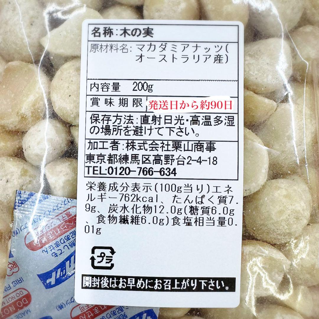 マカダミアナッツ200g【袋2重発送】【ロースト】【塩、油不使用】