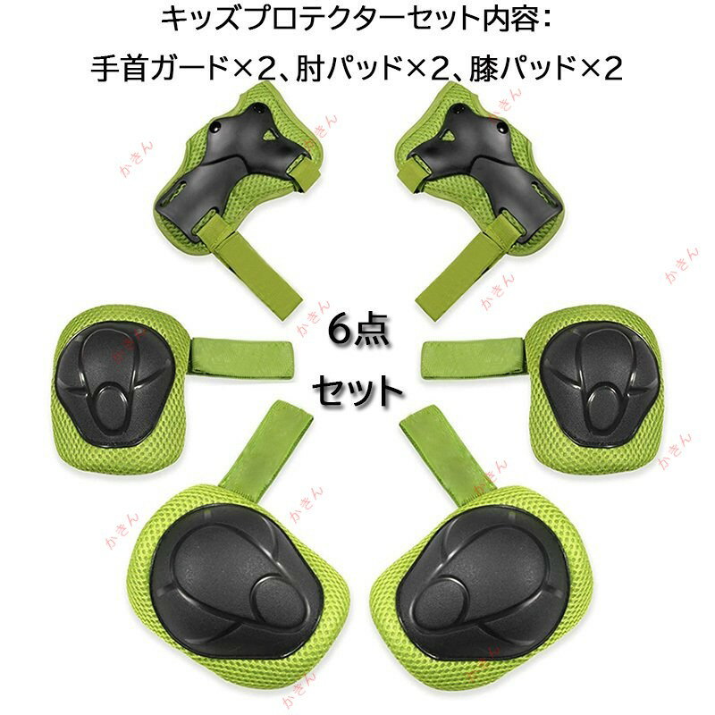 プロテクター スケボープロテクター キッズ 自転車 6点セット プロテクター 子供用 膝肘手首 保護パッド メッシュポーチ付き インラインスケート プレゼント