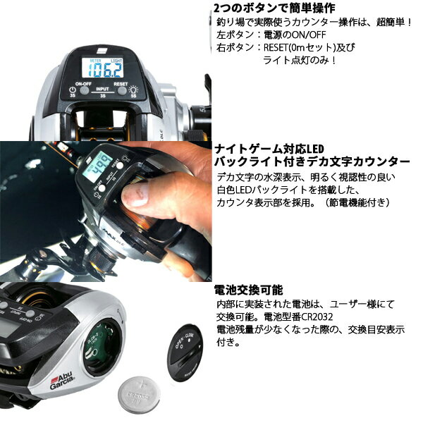ギア比:7.0:1自重(g):220最大ライン巻取(cm/1回転):73最大ドラグ力(kg):5ラインキャパ(m/PE1.5号):200ボール/ベアリング:5/1ハンドル長(mm):105画像は商品イメージです。 商品の代表画像となりますので型番などの仕様に一致しない場合があります。アブ リール 船 カウンター付き 船サビキ イカメタル タイラバ ビシアジ バチコン タチウオテンヤ ライト五目