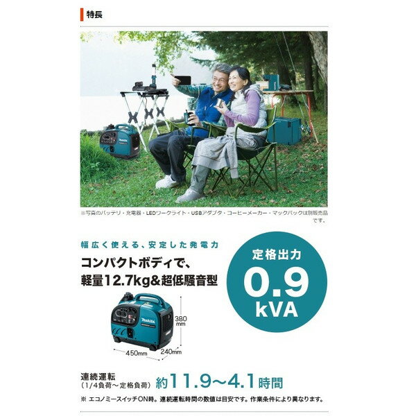 個人宅不可 マキタ インバータ発電機 EG0900IS ポータブルタイプ 定格出力0.9kVA 質量12.7kg 排気量50mL makita 大型製品