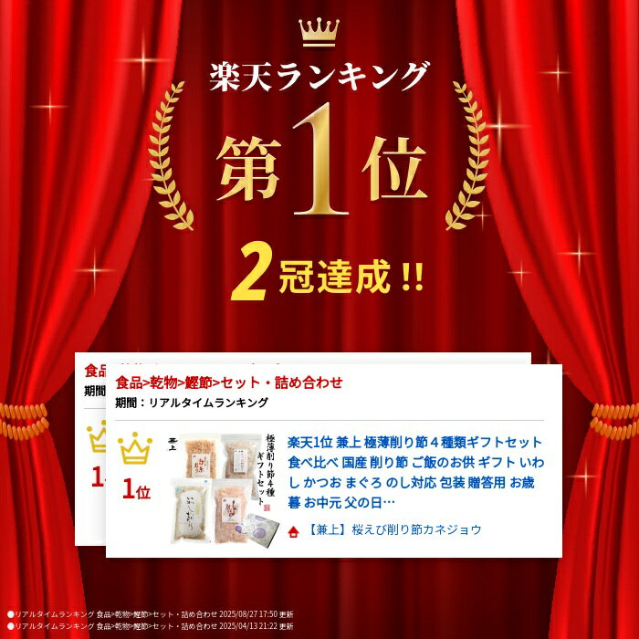 楽天1位 兼上 極薄削り節4種類ギフトセット 食べ比べ 国産 削り節 ご飯のお供 ギフト いわし かつお まぐろ のし対応 包装 贈答用 お歳暮 お中元 父の日 母の日 祝儀 不祝儀 御礼 無塩 グルテンフリー ミネラル補給 送料無料 カネジョウ