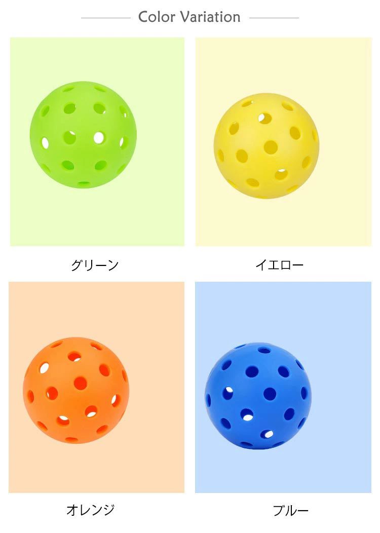 室内でも練習できる!軽くて柔らかいバッティングボール弾力性があり柔らかいのでケガの心配が少なく、お子様と安全に打撃練習できます。軽くて壊れにくいので、毎日バッティング練習するお子様にピッタリ!バットで打っても、足で踏みつけても割れにくい◎穴あき形状で飛びすぎない!狭い室内で練習するのにも最適です。自宅、家、体育館、公園、広場、庭などあらゆる場所で使えます。練習だけでなく、試合前のウォーミングアップや、合宿・遠征先でも大活躍!小学校の低学年・中学年・高学年から中学生、高校生まで、どんな年齢でも使える野球グッズです。 サイズ 直径74mm サイズについての説明 直径74mm 素材 TPE 色 グリーン イエロー オレンジ ブルー レッド ホワイト ピンク 備考 ●サイズ詳細等の測り方はスタッフ間で統一、徹底はしておりますが、実寸は商品によって若干の誤差(1cm・3cm )がある場合がございますので、予めご了承ください。 ●製造ロットにより、細部形状の違いや、同色でも色味に多少の誤差が生じます。 ●パッケージは改良のため予告なく仕様を変更する場合があります。 ▼商品の色は、撮影時の光や、お客様のモニターの色具合などにより、実際の商品と異なる場合がございます。あらかじめ、ご了承ください。 ▼生地の特性上、やや匂いが強く感じられるものもございます。数日のご使用や陰干しなどで気になる匂いはほとんど感じられなくなります。 ▼同じ商品でも生産時期により形やサイズ、カラーに多少の誤差が生じる場合もございます。 ▼他店舗でも在庫を共有して販売をしている為、受注後欠品となる場合もございます。予め、ご了承お願い申し上げます。 ▼出荷前に全て検品を行っておりますが、万が一商品に不具合があった場合は、お問い合わせフォームまたはメールよりご連絡頂けます様お願い申し上げます。速やかに対応致しますのでご安心ください。 不良品についての説明基づいて掲載しています