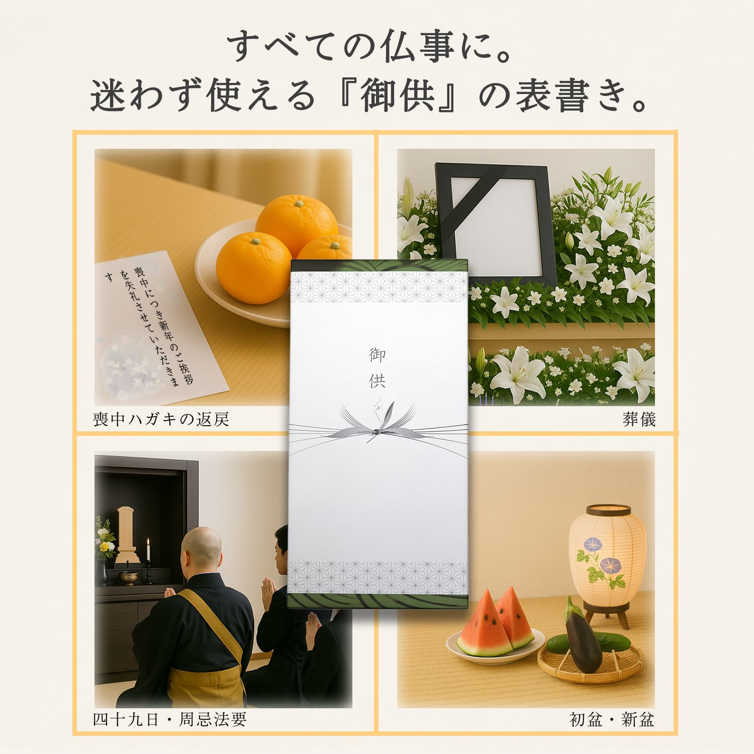 ■ 香りの特長・白檀をベースにフローラルを重ねた上品な香り・少煙タイプで空気を汚しにくく、心穏やかに香ります ■ 贈答に安心・紙箱/内熨斗/ろうそく付き ・宗派を問わず幅広くご利用いただけます。・葬儀、初盆、法要などすべての仏事にお使いいただける「御供」の表書き進物線香 商品詳細 ■ サイズ・内容量・線香×3箱/蓮型キャンドル3個/ギフト仕様の箱・線香の長さ:約13.5cm / 燃焼時間:約25分・外寸(cm)33×18×4(高さ) ご注意・香りや色合いはモニターや製造ロットにより多少異なります。・仏事では「名入れ無し」が一般的です。 大切な方へのご供養に。明細書なしで、直接ご指定先へお届けします。大切な方へのお悔やみに、やさしい天然香料の香りで心を込めて。創業90年の老舗による調香で、やさしく清らかな香りが祈りの場を彩ります。桐箱入りで、そのまま安心して贈れる進物線香ギフトです。