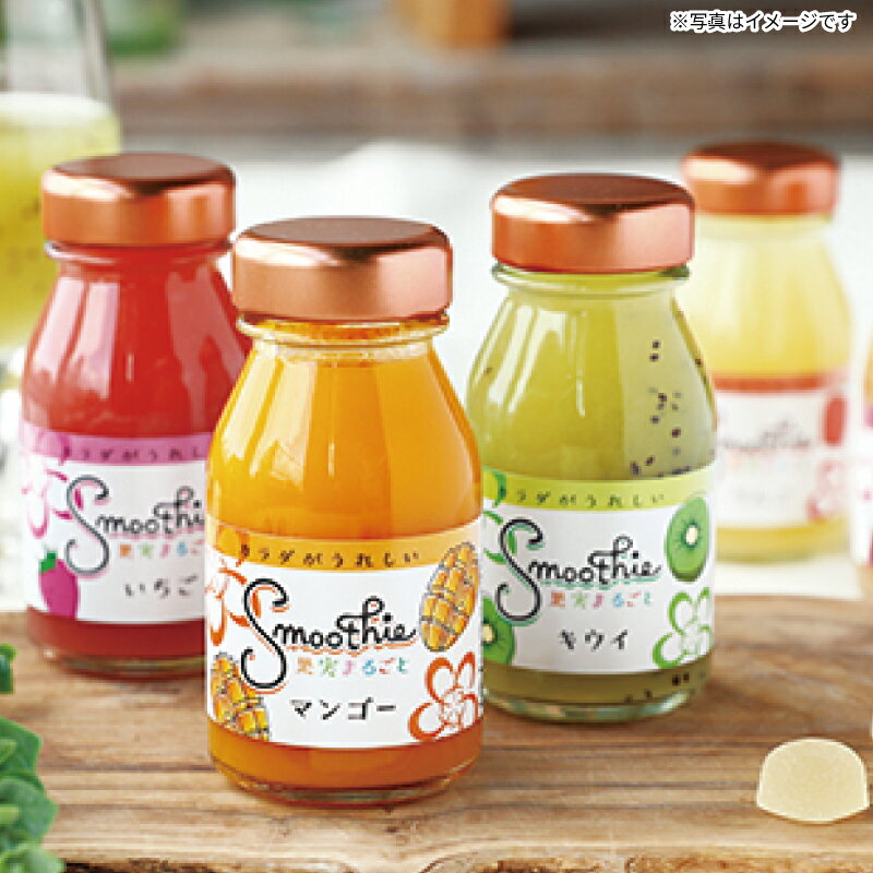甘さを抑え、果実そのままの味わいを大切に仕上げたスムージー。 スムージー いちご・いちじく・キウイ・りんご 130g×各1、マンゴー130g×2 ●賞味期間:常温で180日
