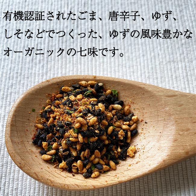 商品情報名称有機七味原材料名有機いりごま(国内製造)、有機唐辛子、有機ゆず皮(乾燥)、有機しそ(乾燥)、食塩、山椒、あおさ内容量10g栄養成分表示(100gあたり)エネルギー:516kcalたんぱく質:18.0g脂質:38.1g炭水化物:33.1g食塩相当量:3.3g(推定値)商品区分健康食品※同一工場内で、小麦、大豆、乳成分、卵、ゼラチン、さば由来加工品、アーモンドの一部取扱いあり。和田萬 有機 ゆず七味 10g 有機JAS 有機 オーガニック ゆず 七味 和田萬 ゴマ ごま 胡麻 内 容 量:10g原 材 料:有機いりごま(国内製造)、有機唐辛子、有機ゆず皮(乾燥)、有機しそ(乾燥)、食塩、山椒、あおさ保存方法:直射日光・高温多湿を避け常温保存賞味期限:製造日より1年アレルギー表示:ごま 5