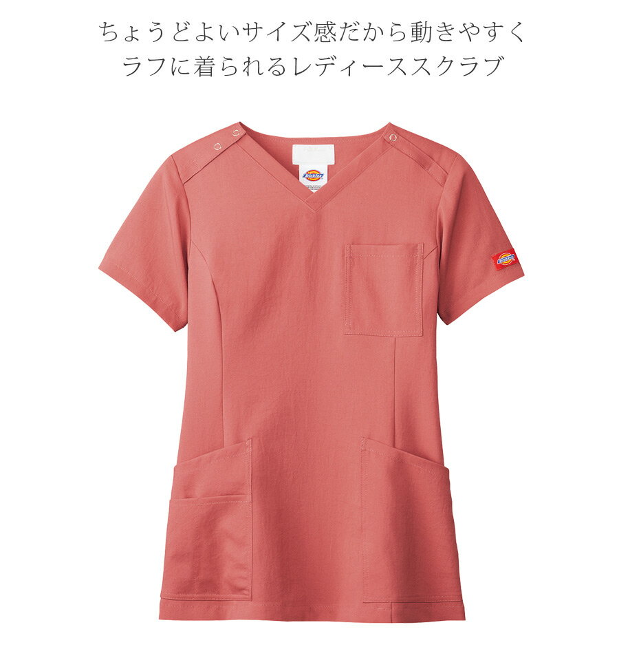ディッキーズ スクラブ レディース 7071SC 医療用 白衣 看護師 ナース 介護士 病院 クリニック 半袖 ストレッチ 女性用 ピンク ネイビー おしゃれ かわいい フォーク FOLK