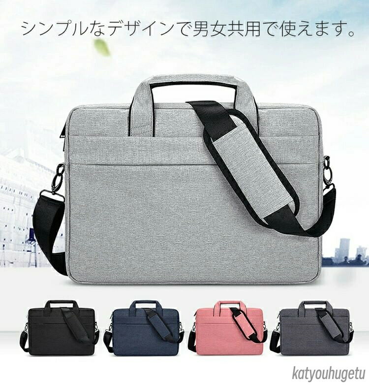 商品名 多機能パソコンバッグ サイズ 【バッグサイズ】 ★13.3インチ:36*26*5.5cm(外寸)、34.5*24.5*5.0cm(内寸) ★14.1インチ:39*28*5.5cm(外寸)、37.5*26.5*5.0cm(内寸) ★15.4インチ:39*28*5.5cm(外寸)、37.5*26.5*5.0cm(内寸) ★15.6インチ:43*32*6.0cm(外寸)、41.5*30.5*5.5cm(内寸) ※必ずお使いの機器と当ケースの収納寸法をご確認の上お買い求めください ※人の手にての計測となります為、サイズにつきましては1〜2cmの誤差が生じる場合がございます。 予め、ご了承の上、ご注文下さい。 商品説明 【収納効果抜群&出張便利】 大容量、多機能のポケット付きので、マウス、充電器、USBケーブル、大学ノート、折り畳み傘などたくさんのアイテムが収納できます。また、背面側にはスーツケースにセットアップできるキャリーバー通しを装備されています。通勤、出張、通学、日常のお出かけなどいろんなシーンで快適に持ち運びができるおしゃれでコンパクトなPCケースです。 【防水&丈夫な素材】 撥水加工が施しますので、ちょっとの雨でも、気にしません。水滴からご貴重なノートPCを保護します。 ポリエステル繊維の層と柔らかい裏地で小さな衝突を吸収し、衝撃からのダメージを軽減し、パソコンを傷から守ります。外側の生地は頑丈でとても長持ちします。ケースの上部に付いている取っ手はノートパソコンを運ぶことに使用することができ、簡単にポケットに収納することができます。持ち運びに便利なパッド付きショルダーベルトが付属しています。 【2wayバッグ】 手提げバッグ、斜めがけバッグ。通常的にこのバッグがショルダーバッグとして使えますが、ハンドル付きなので、トートバッグにもなります、2WAYバッグとしてご利用いただけます。 商品カラー ピンク、グレー、ブラック、ネイビー、ダークグレー 注意事項 1.PC、環境、光の具合等により、色のイメージが画像と若干異なる場合が御座います。 2.製造上、細かな汚れやシワ糸のほつれが発生する場合がございます。度を超して痛みのある場合には弊社までご連絡下さい