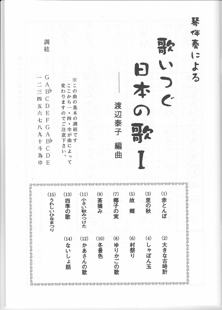 渡辺泰子 箏曲 楽譜 琴伴奏による 歌いつぐ日本の歌1 (送料など込)