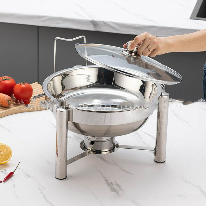 ビュッフェサーバー チェーフィングディッシュ 湯煎式保温器 卓上式保温スープボウル フードウォーマー 蓋付き ステンレス製 三脚 ビュッフェウォーマー 業務用 バイキング ビュッフェ