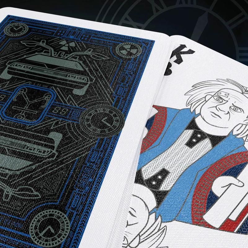 バック・トゥ・ザ・フューチャー トランプ(Bicycle × Universal) あの名作が、プレミアムトランプになって帰ってきた。 1985年公開の不朽の名作 バック・トゥ・ザ・フューチャー とBicycle®、Universal®のコラボレーションによって誕生した、 ファン必携のコレクターズデッキです。 映画のビジュアルアイデンティティと、 伝統的なトランプデザインを融合。 カードファン・映画ファンのどちらも満足できる、特別仕様に仕上がっています。 ■ 高級感あふれる外箱デザイン タックケースは、細部までこだわったプレミアム仕様。 シルバー&コバルトブルーのフォイル加工 精密なエンボス加工 映画モチーフの専用シール封印 手に取った瞬間に、特別感が伝わる仕上がりです。 ■ 映画ファン必見のカードデザイン カードデザインには、ファンにはたまらない要素が満載。 デロリアンを描いたカスタムカードバック 映画の名シーンを元にしたイースターエッグ多数収録 登場人物たちを描いたカスタム・コートカード 細部まで作り込まれたアートワークで、 眺めるだけでも楽しめます。 ■ プレミアム体験をあなたのコレクションに 本デッキは、単なるトランプではなく、 コレクション価値の高いプレミアムアイテム。 飾る・遊ぶ・語る―― すべてを楽しめる一組です。