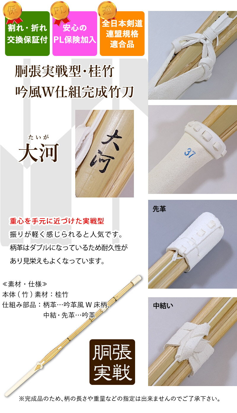 【SSPシール付・安心交換保証付】●2本セット 剣道 竹刀 胴張実戦型・吟風W仕組み完成竹刀 ●大河 38サイズ 高校生用(38 高校生)送料無料 まとめ買い