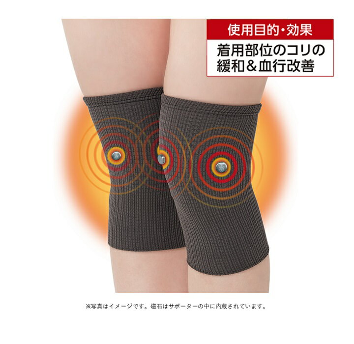 マグネリラックス血行改善サポーター ひざ用2枚 取扱注意事項 弱く絞る、もしくは短時間脱水をしてください。濃色の物は、淡色や白物と一緒に洗わないでください。着用時に強い摩擦を受けたり、水や汗等で湿った状態で他の物とこすり合わせると色が移る恐れがあります。万一色移りした場合は早めに洗濯してください。 良く伸びてひざ回りを優しくサポート! 永久磁石(ネオジウム磁石)を片足に2個配置。 磁気の力で、コリの緩和と血行を改善します。 磁石は、ひざ頭を挟むように2個配置! 関節や、冷えでお悩みの方にお勧めです! 寒さからくる膝の冷え対策におすすめです。 夏場の冷房対策から年中冷え性の方にもおすすめです。 良く伸びるので、嫌な締め付け感も少なく、ひざ周りにぴったりフィットします。 管理医療機器 家庭用永久磁石磁気治療器 71016000 認証番号:305AGBZX00016000 磁束密度:150mT±50mT