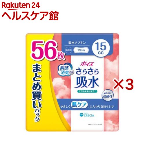 ポイズ さらさら吸水 吸水ナプキン 15cc まとめ買いパック(56枚入×3セット)【ポイズ】