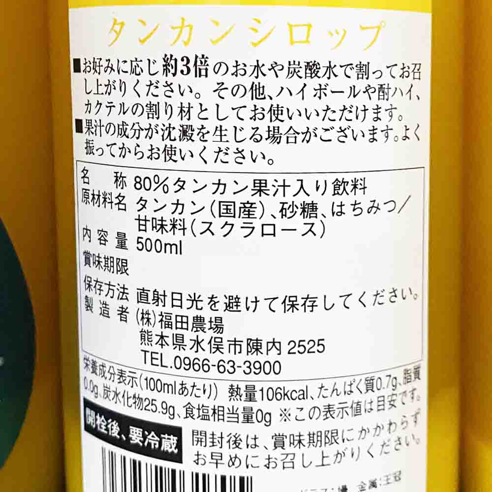 福田農場 鹿児島 タンカン シロップ 500ml 瓶