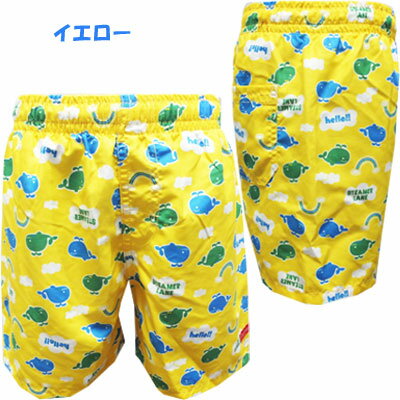 【ネコポスOK】 プチプライス☆ 男の子 クジラ総柄 ピスネーム付き サポーターパンツ付き サーフパンツ ブルー、イエロー 120cm、130cm 海、プール、水泳、学校 子供、子供服、キッズ