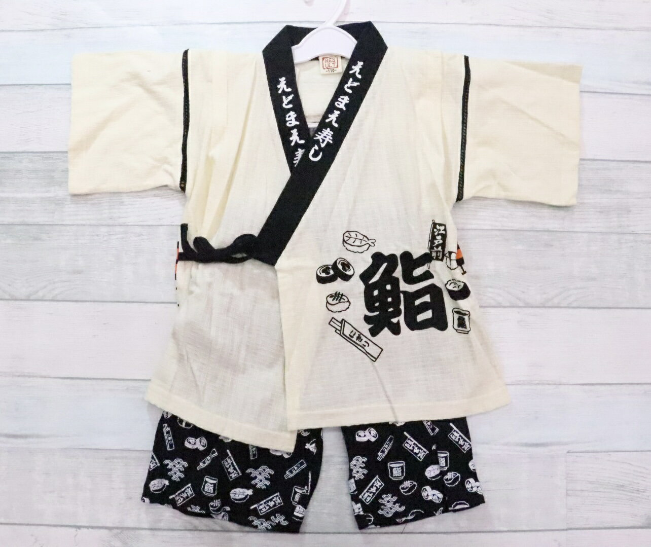 甚平 じんべい はっぴスーツ 法被 なりきり 110cm 120cm 130cm ハッピ 祭 寿司 鮨 め組 男の子 女の子 子供服 上下セット 2点セット 綿100% セットアップ 可愛い 夏祭り すいか かき氷 プレゼント
