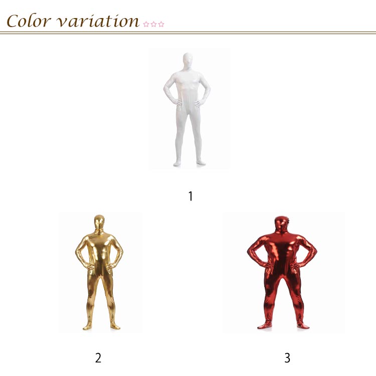 顔まですっぽり覆うタイプの全身タイツ。カラーバリエーションとサイズ展開が豊富なため、大人や子供、男性、女性関係なく着られます。薄くて軽い、伸縮性のある素材を使用しているため熱がこもりにくく、快適な着心地。タイツの中央にファスナーが着いているので脱ぎ着もラクラクです。 サイズ 大人S 大人M 大人L 大人XL 大人2XL 大人3XL 子供S 子供M 子供L サイズについての説明 大人S バスト80 ウエスト68 ヒップ80 おすすめ身長140ー150大人M バスト86 ウエスト74 ヒップ86 おすすめ身長150ー160大人L バスト92 ウエスト80 ヒップ92 おすすめ身長160ー170大人XL バスト98 ウエスト86 ヒップ98 おすすめ身長170ー180大人2XL バスト104 ウエスト92 ヒップ104 おすすめ身長180ー190大人3XL バスト110 ウエスト98 ヒップ110 おすすめ身長190ー200子供S バスト59 ウエスト47 ヒップ56 おすすめ身長100ー110子供M バスト64 ウエスト52 ヒップ62 おすすめ身長110ー120子供L バスト69 ウエスト57 ヒップ68 おすすめ身長120ー130 素材 スパンデックス+ナイロン 色 1 2 3 4 5 6 7 8 9 10 11 12 13 14 備考 ●サイズ詳細等の測り方はスタッフ間で統一、徹底はしておりますが、実寸は商品によって若干の誤差(1cm・3cm )がある場合がございますので、予めご了承ください。 ●商品の色は、撮影時の光や、お客様のモニターの色具合などにより、実際の商品と異なる場合がございます。あらかじめ、ご了承ください。 ●製品によっては、生地の特性上、洗濯時に縮む場合がございますので洗濯時はご注意下さいませ。 ▼色味の強い製品によっては他の衣類などに色移りする場合もございますので、速やかに(脱水、乾燥等)するようにお願いいたします。 ▼生地によっては摩擦や汗、雨などで濡れた時は、他の製品に移染する恐れがございますので、着用の際はご注意下さい。 ▼生地の特性上、やや匂いが強く感じられるものもございます。数日のご使用や陰干しなどで気になる匂いはほとんど感じられなくなります。 メーカー希望小売価格はメーカーカタログに基づいて掲載しています