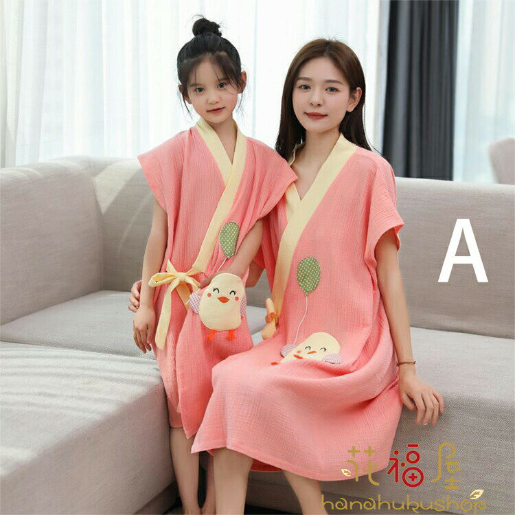 【2580円→実質2528円 P2!】親子ペア バスローブ 子供 春夏秋 男の子 女の子 ガウン 春秋用 おしゃれ 半袖 ・部屋着 ホームウェア 無地 可愛い 寝巻き ナイトウェア 子供服 単品売り 綿のガーゼを 速乾 ルームウェア