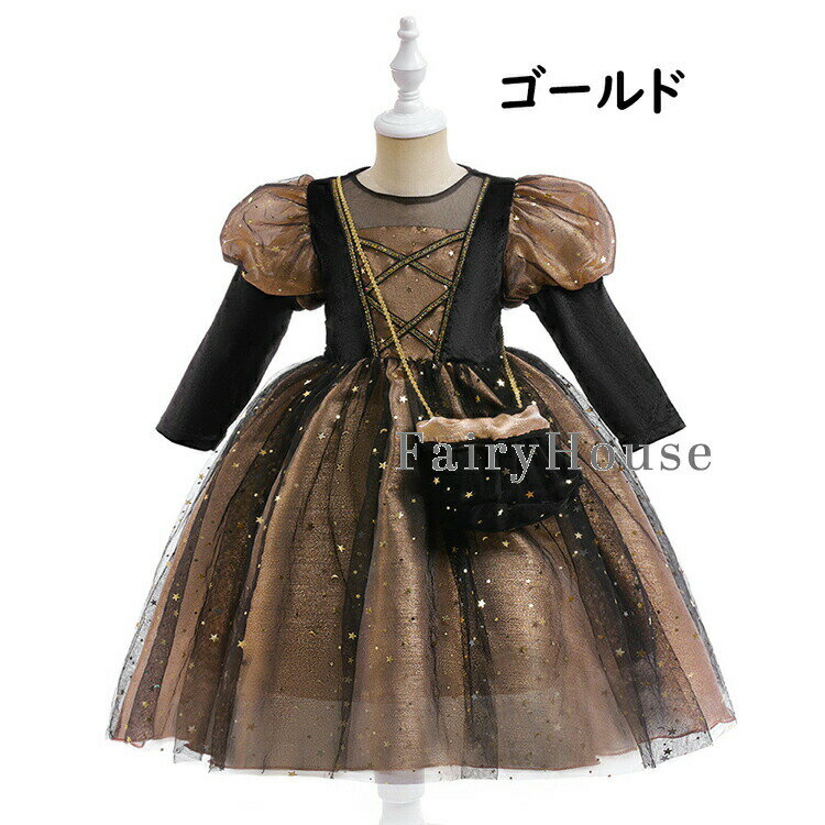 【3680円→実質3606円 P2利用! 11/27 01:59迄】ハロウィン 仮装 子供 女の子 ドレス ポシェット 鞄 ワンピース 長袖 キッズドレス パーティドレス Halloween コスプレ 110cm 120cm 130cm 140cm 150cm 妖精 魔女 コスチューム