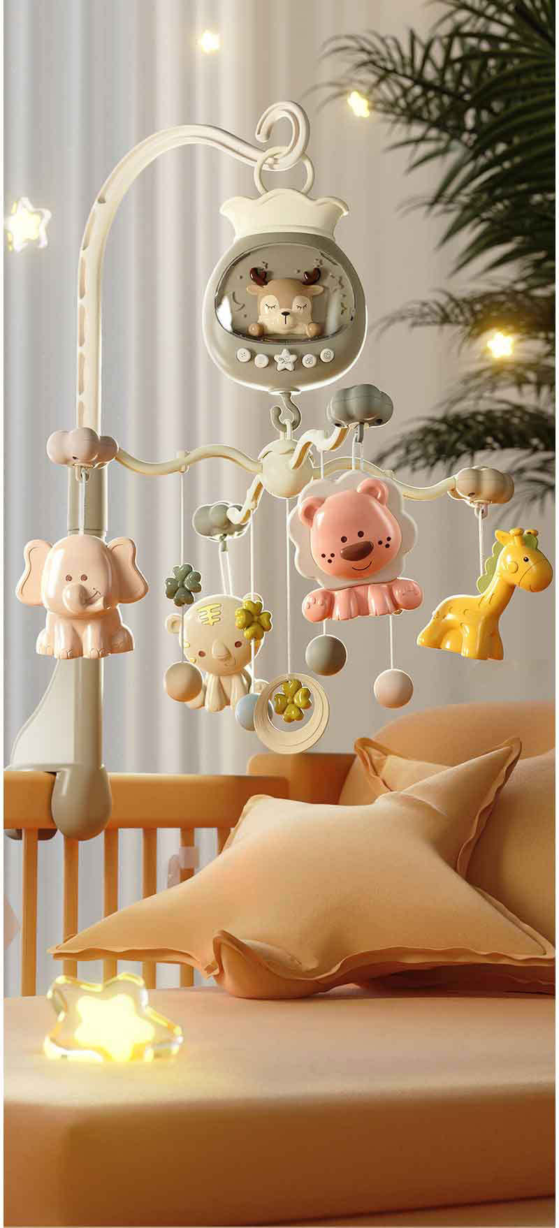 ベッドメリー ベビー用ベッドメリーおもちゃ 回転式ガラガラメリー ベビーベッド音楽オモチャ ぶら下げベッドメリー 幼児用寝具 音量調節可能 360度回転 ライト 出産準備 出産祝い ギフト 赤ちゃん 誕生日 プレゼント